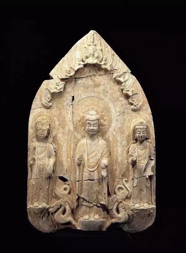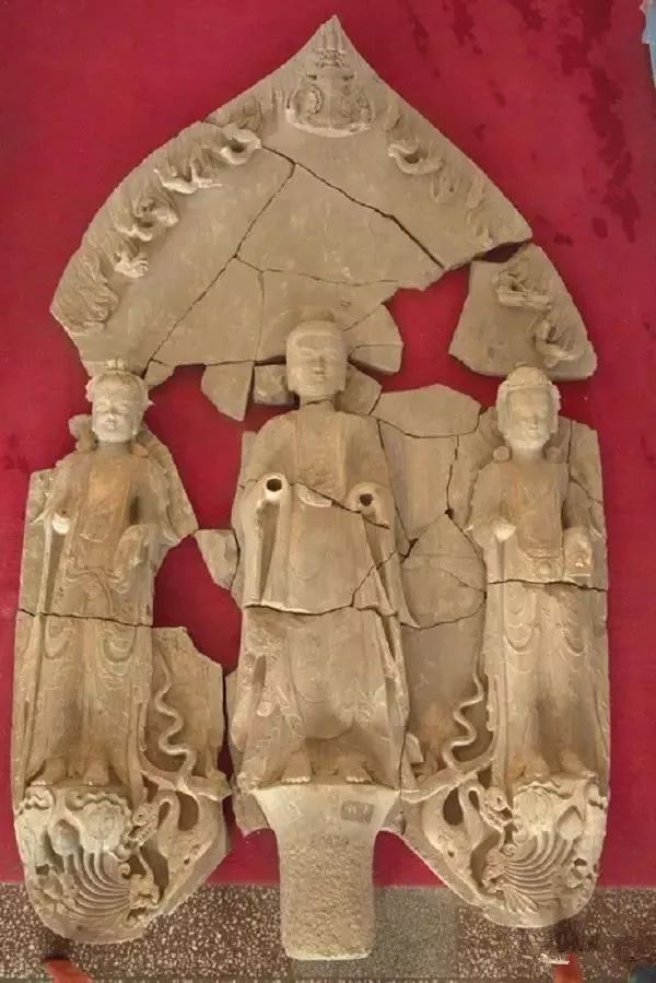 ▲一佛二菩萨贴金彩绘像 东魏-北齐