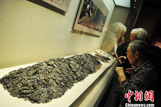 A source said that about 2 million Wu Zhu coins weighing more than 10 tons were unearthed, and 100,000 have been sorted so far. Surprisingly, the character on one coin was found to have been carved upside down. The source added that considerably more time is needed to sort through the rest of the coins, although half a year has been spent on the task already.
