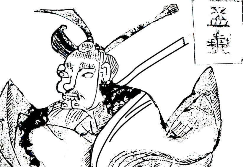 蔺相如完璧归赵的故事非常著名。战国赵惠文王时,秦昭王写信给赵王,愿以十五个城池换取“和氏璧”,蔺相如奉命带“和氏璧”来到秦国,据理力争,机智周旋,终于“完璧归赵”。汉画像中蔺相如的画像很多,都是以《史记·廉颇蔺相如列传》为文本依据,着重表现蔺相如“持璧却立,倚柱,怒发上冲冠”的情节特征。如沂南北寨画像石墓中的蔺相如,整体轮廓用白描手法勾勒,人物性格刻画鲜明,横眉上扬,眼神刚毅,胡须飞扬,怒发冲冠,冠带飘扬,蔺相如左手持宝璧,举过头顶,斜视庭柱,预撞向庭柱(图10)。