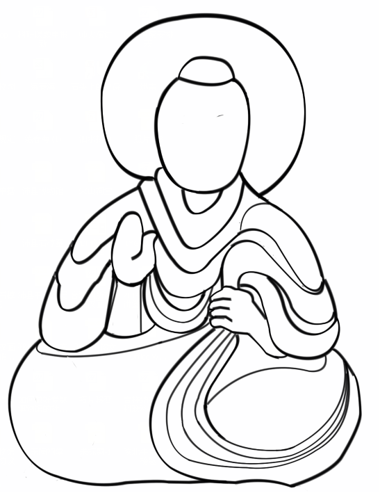 东汉初期,佛教已经传入中国。学术界多数认为,公元一世纪的时候,印度的佛像被希腊的艺术家在犍陀罗地区创造出来,因此早期的画像石中并没有佛像。根据早期印度佛像的特点,佛造像的图像应该具备以下几方面的特点:一是肉髻;二是背光;三是手印;四是坐式样,佛的坐姿为结跏趺坐。四川乐山麻浩I区一号崖墓后室享堂门楣上的石刻佛像,通高37厘米,高肉髻,头绕圆形顶光,身着通肩大衣,右手似作“施无畏印”,左手似握大衣衣角,结跏趺坐,应当是释迦牟尼肖像(图16)。
