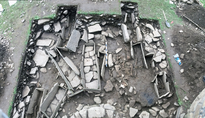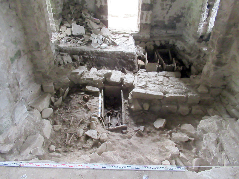 В результате исследований на раскопе 3 вскрыты 12 плитовых ящиков, частично разрушенных (в том числе реставрационными шурфами). Плитовые ящики расположены в два слоя. Выявлено 13 погребений, частью фрагментированных. Все они оказались безынвентарными, что объясняется христианской принадлежностью погребенных. Работы на раскопе будут продолжены в следующем полевом сезоне.