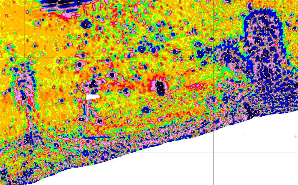 При идентификации локальных магнитных аномалий найдены многочисленные скопления мелких окатанных камней, являющихся, вероятно, судовым балластом, а также 2 железных якоря высокой степени сохранности, датируемых VI–VII вв. н.э. |