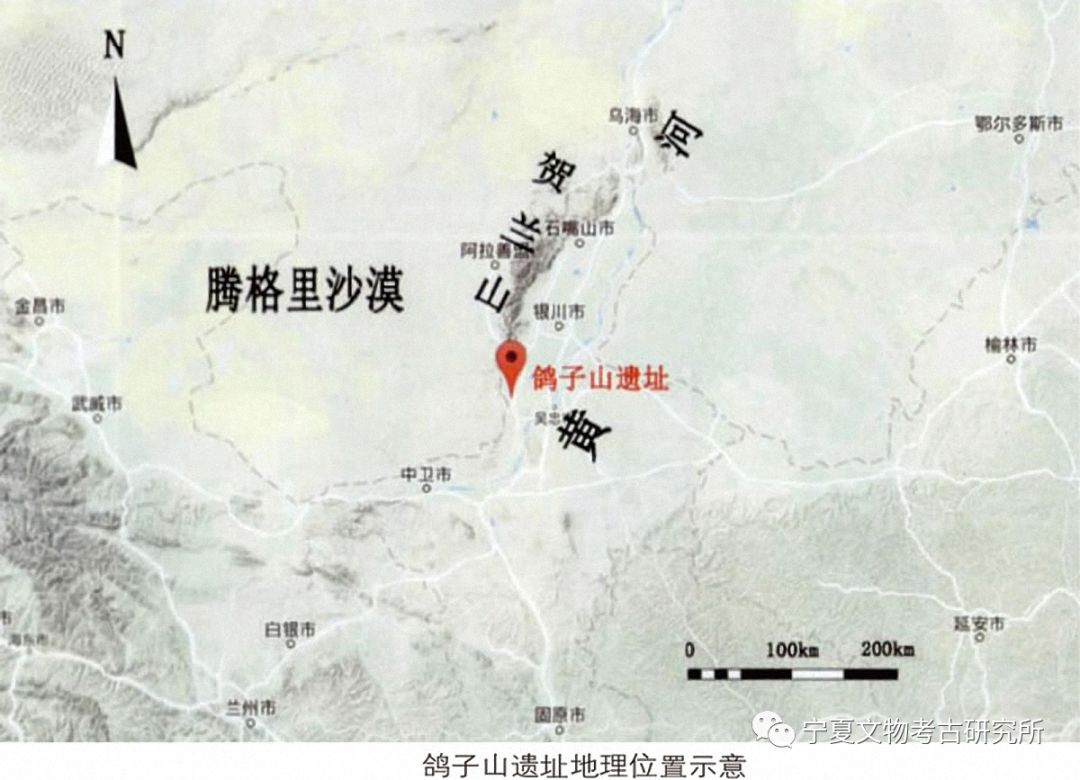 鸽子山遗址位于青铜峡市西北约20公里的贺兰山山前盆地,是晚更新世末期的一处重要史前遗址,20世纪90年代被发现,并于2006年被列入全国重点文物保护单位。2012年当地施工取水,在遗址核心区开掘出一个南北长约40米、东西宽约13米的大坑,坑内泉眼涌出的水形成一个面积约60平方米的人工湖。