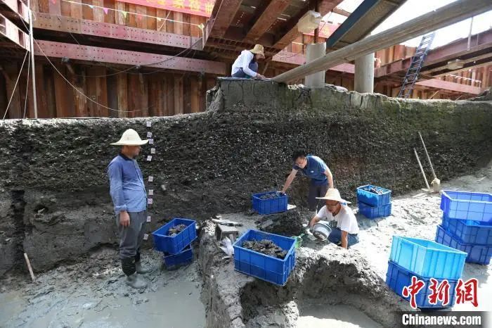 宁波余姚靠海,这里属于地下海涂环境,都是淤泥。地下水位高虽让遗存得以较好保存,但若深挖,很容易发生塌方。