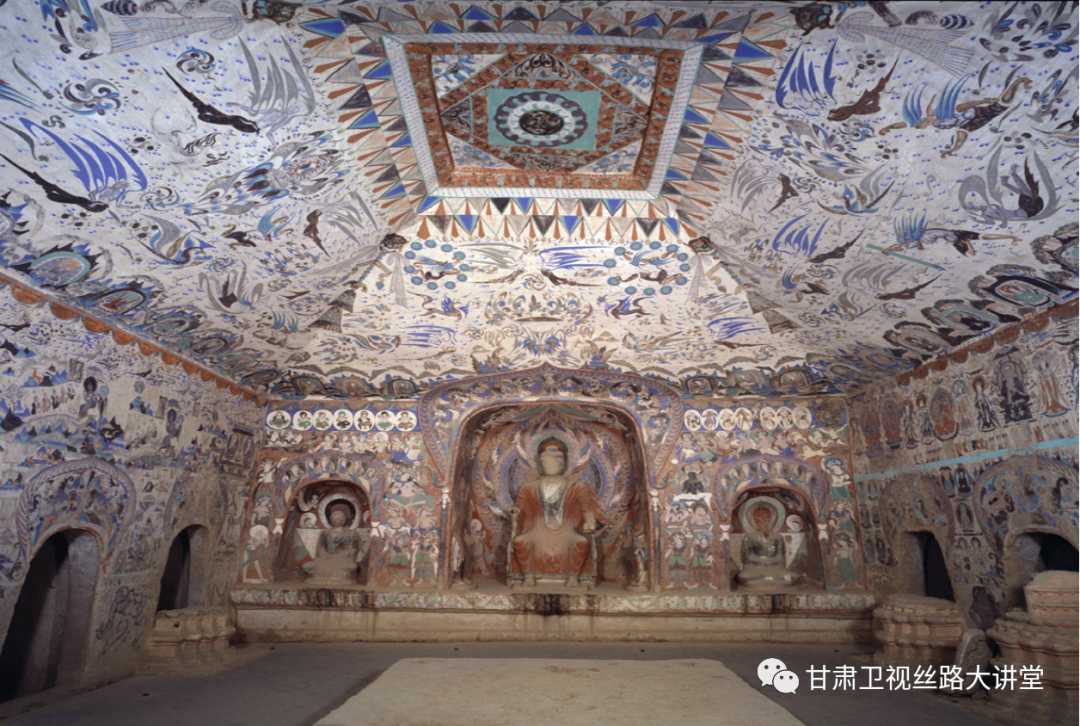 我说这个洞窟它是敦煌石窟中最经典的能反映多种文明的在敦煌相会,融汇,最后自成一家的一个洞窟。