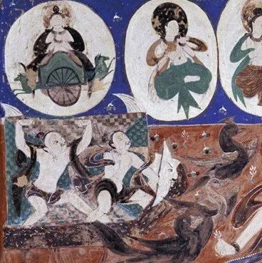 大家看到这些大家可能很奇怪,明明这是一个佛教洞窟,怎么我们中国的人文始祖,这些神仙瑞兽都到洞窟来了?