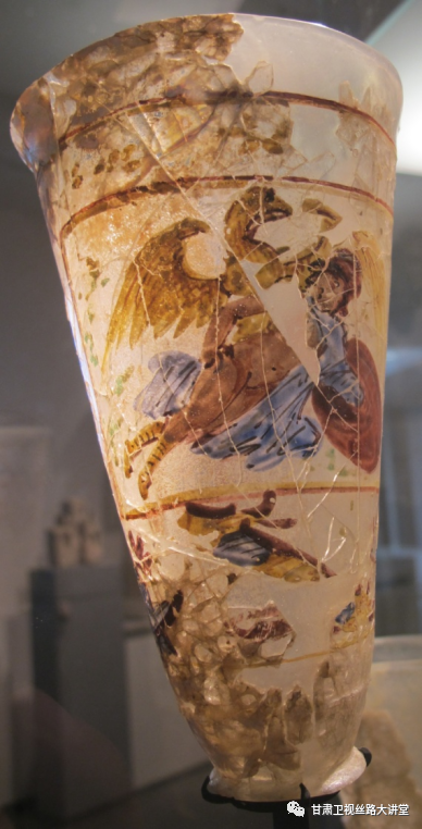 特别有意思的这个,这个可以说是让我本人兴奋到一个极点。这是2004年6月份我和我一个同事沙武田研究员,他现在陕西师大,我们到受法国国家科学院的邀请去法国访学一个月,其中我们有一天去集美博物馆,就是收藏了东方和敦煌艺术品的博物馆去看,当时就看到这个玻璃(杯)很兴奋,为什么?