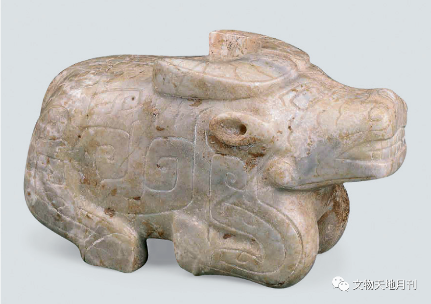 学者认为,青铜时代的动物纹饰或许具有中介作用,是巫觋与上帝或者祖先的神灵沟通的桥梁和媒介,或者说是工具之一。张光直先生指出,“礼乐铜器在当时显然用于祖先崇拜的仪式,而且与死后去参加祖先的行列的人一起埋葬。因此,这些铜器上铸刻着作为人的世界与祖先及神的世界之沟通的媒介的神话性的动物花纹。”“助巫觋通天地的若干特殊动物,至少有若干就是祭祀牺牲的动物。”依此理论,出土的牛形、牛纹饰商周青铜器、玉器,应是这方面的祭器用器。