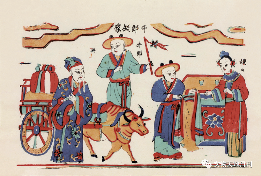 图四六 清 潍坊杨家埠年画《天河配》之牛郎搬家 山东博物馆藏