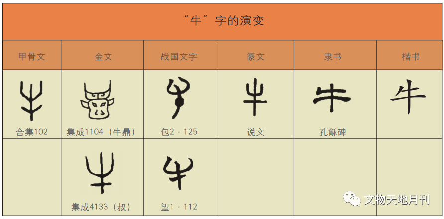 当时人们饲养牛的数量巨大,非常熟悉牛,并抓住牛的特征创造了“牛”字。甲骨文中“牛”的多种字形的共同特点便是对牛角进行突出表现。在以牛为主题的青铜重器中,我们也可以看到,牛坚实的双角可谓是必不可少的刻画要素。