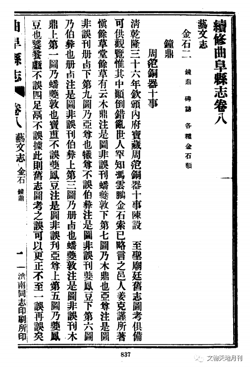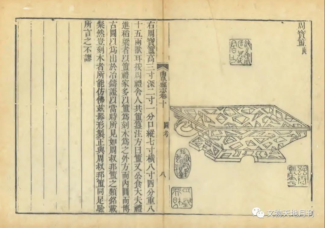 图二 乾隆三十九年《曲阜县志》所载宝簠之图与图说