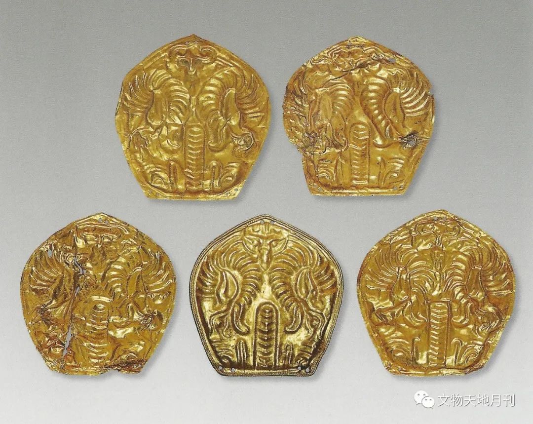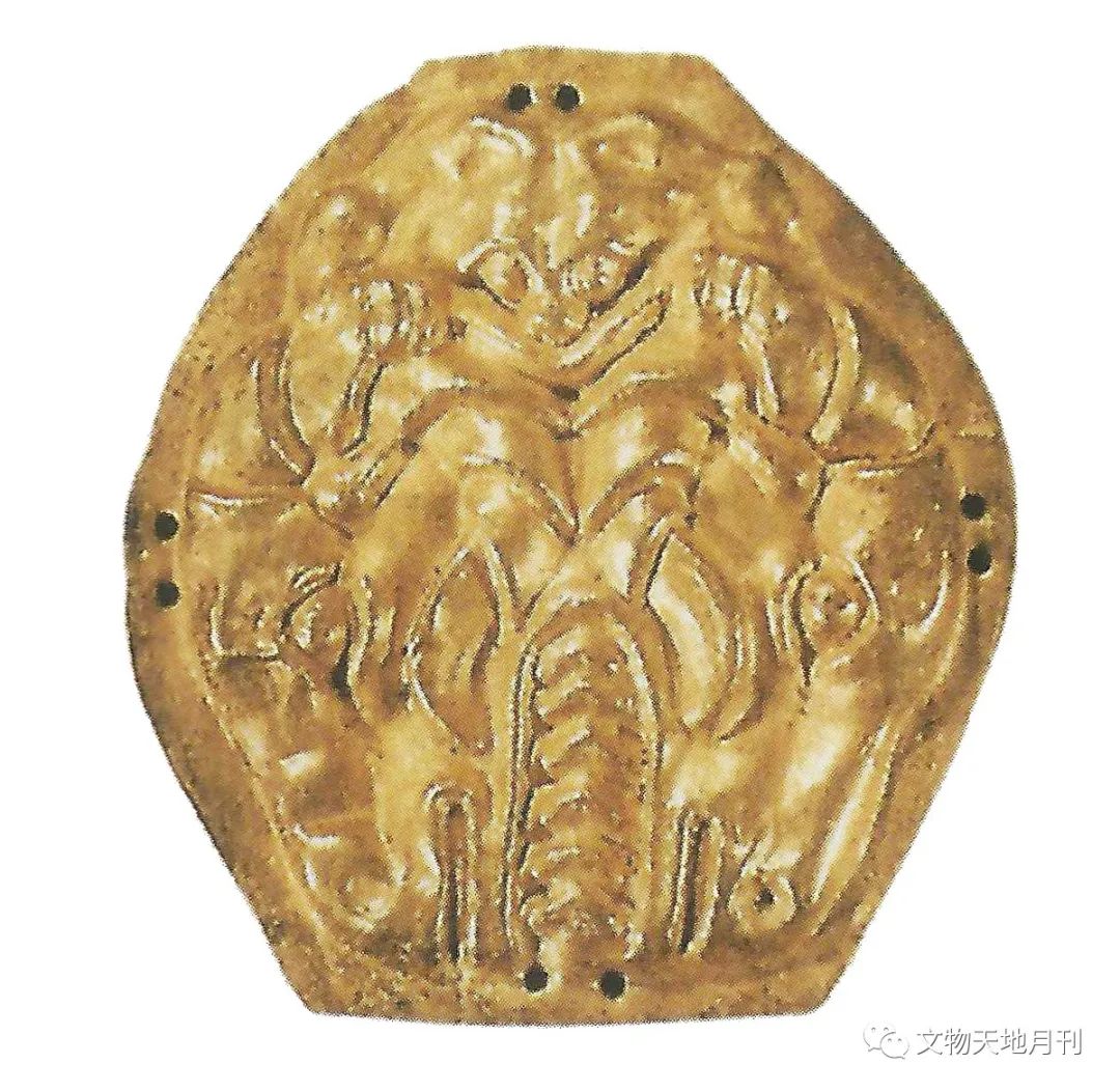 综合以上,我们可以看到北方草原民族使用金饰片、牌饰的习俗,是在秦汉之际逐渐由北向南传播的,不仅有同类器物的直接传播或复制,如双羊纹牌饰,在南北均有出土,也有南方沿袭了北方的纹饰母题,但是在表现形式上有所不同,就如本文所讨论的对羊纹金饰片。这类金饰片目前尚未在北方先秦墓发现,由此猜测,很可能是中原工匠借用了北方草原民族的文化元素而重新创造的器物。