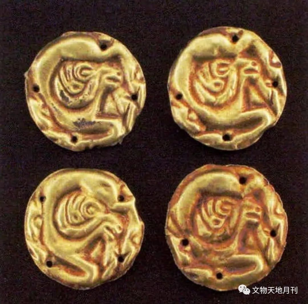 假如把目光转向更远的新疆阿尔泰地区,以及阿尔泰以北、以西的地区,有更多年代更早、种类更多的各类羊纹主题的金饰、铜饰,由于出土数量多,地域跨度广,这里不一一叙述,杨建华等所著的《欧亚草原东部的金属之路》一书有详述。