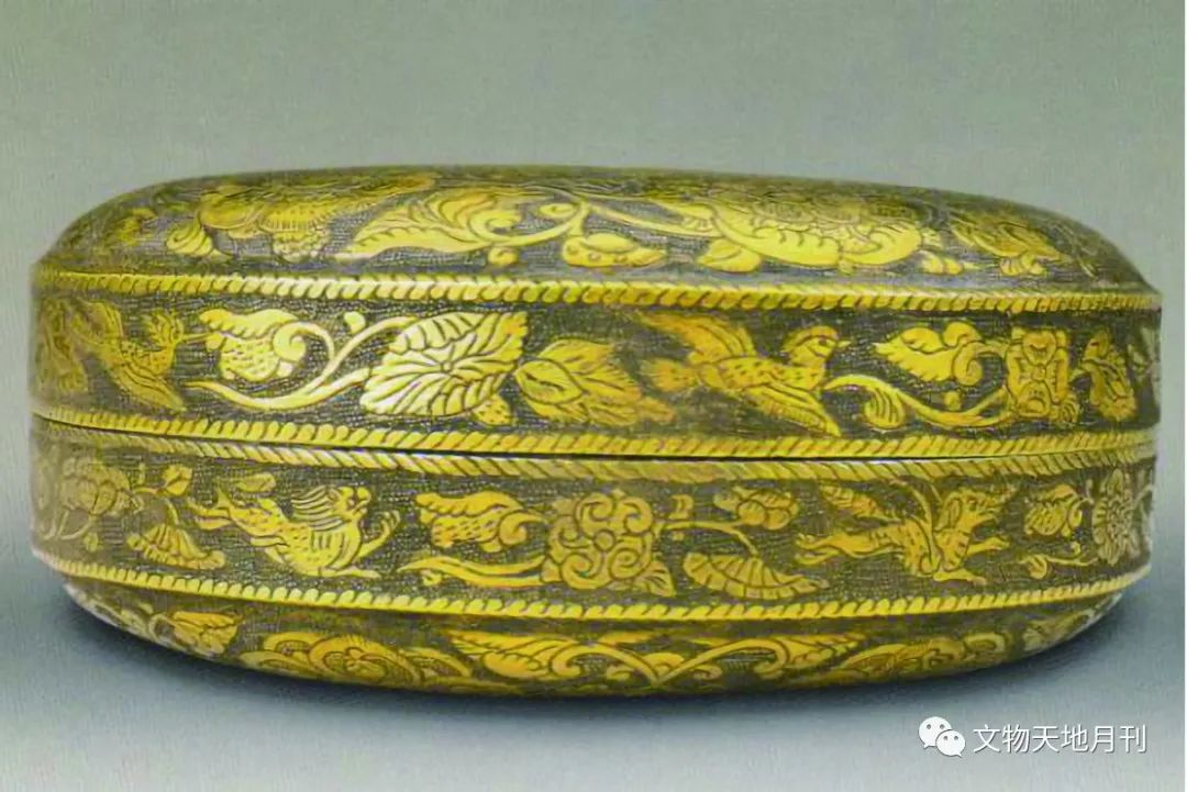 鎏金飞狮纹银盒1970年10月出土于西安市南郊何家村唐代窖藏,现藏于陕西历史博物馆。何家村唐代窖藏共计收纳金银器、宝玉珍饰、贵重药物、中外钱币等文物共计1000多件,其中金银器皿271件,类型涉及金碗、金杯、银羽觞、银铛、银罐等,数量庞大,纹样美观,艺术价值较高。