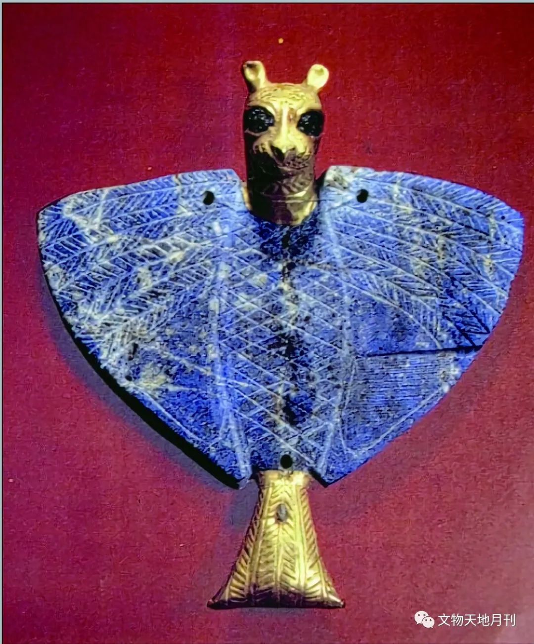 在西亚,狮子往往是神力、王权与力量的象征。据有限资料记载,西方翼狮形象最早可追溯到古埃及神话中长有翅膀的怪兽——“斯芬克斯”,它有三种形象:人面狮身、羊头狮身、鹰头狮身。最早有迹可考的翼狮形象来自于两河流域自苏美尔文化中负责天地之间关联的暴风雨神——安祖的形象狮头鹫,见于苏美尔乌尔第一王朝的珍宝——黄金青金石狮头鹫安祖像(公元前2600年左右)。乌尔第三王朝以来,直至巴比伦、亚述时代,安祖形象从狮头鹫又发展为翼狮或鹰头翼狮的形状。两河流域的翼狮是有明确意涵的具体之神,且翅膀巨大强壮,有飞翔之力,不似后来中国大部分翼兽只有象征性的小翅膀。
