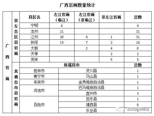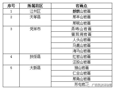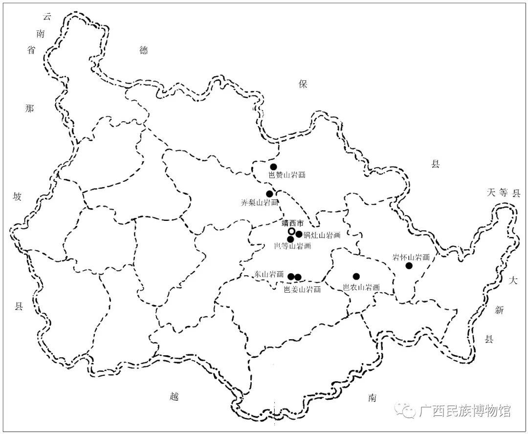 除崇左地区岩画外,在广西其他8个县市还分布有不同类型的岩画,共计17个岩画点。