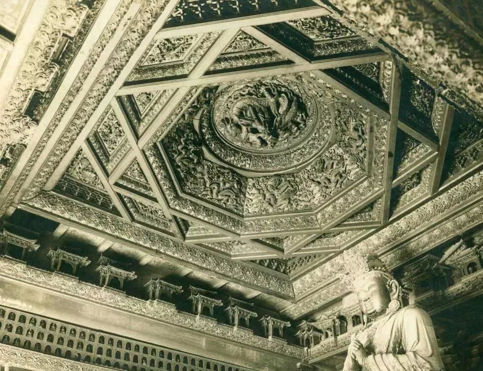 万佛阁藻井"丢失”后的现状(裸露的梁架结构)