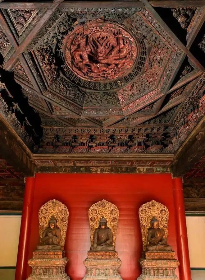 当我们走进智化寺步入智化殿和万佛阁的时候,抬头仰望,本该映入我们眼帘的是庄重华美的两座斗八藻井,而如今留给我们的只是空旷深邃的梁架空间结构。藻井不在了,藻井去哪儿了……