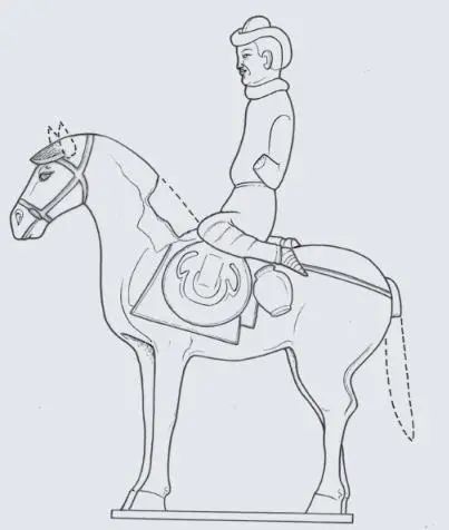 戴厚卷边圆顶风帽的多为骑马俑,戴此帽者皆穿厚圆领襦,以娄睿墓标本 606、611 为代表。骑士所戴帽主要保护头顶及后脑,露出两颊,帽边极为厚实,当为皮毛制成,帽顶处以一根细带扎束,扎束处当为发髻根部,很好地将帽、发髻牢牢固定,并使帽屋呈现出圆顶的效果。