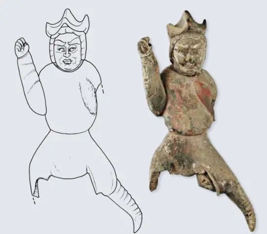 ▲贺拔昌墓标本 T99HQH21,大三棱帽俑