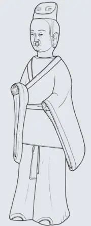 头巾,形状类似长帕,汉初常为卑位执事者所用。汉元帝额头有壮发,所以戴头巾遮挡,群臣吏民竞相效仿,竟成时俗,头巾遂渐成为男子主要首服。娄睿墓、徐显秀墓壁画中均绘有以巾裹发的男子形象,其中尤以徐显秀墓壁画人物戴巾者数量最多且典型,墓道东西两壁壁画对称,所绘人物均头戴紫巾,系带于颔下,墓室壁画所绘男侍者也多有头戴幅巾者。沈从文先生《中国古代服饰研究》中提到魏晋北朝巾幅时说 :“汉、晋之际,或因为经济贫乏,或出于礼制解体,人多就便处理衣着,终于转成风气,武将文臣,名士高人,着巾子自出心裁,有种种不同名目。”