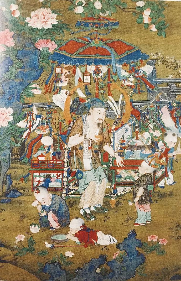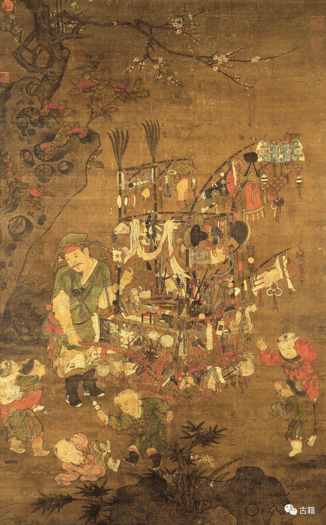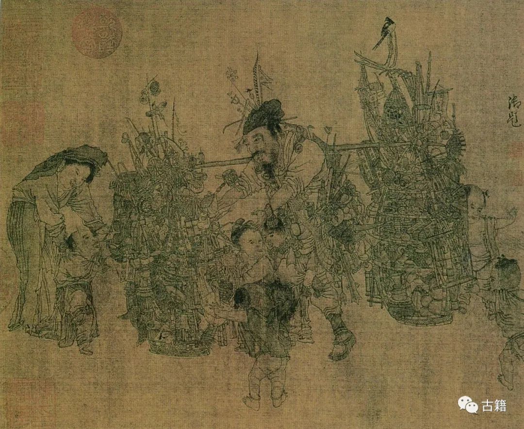 货郎图 宋代画家张择端《清明上河图》中北宋都城汴京的繁荣景象令人印象深刻,其实不仅仅在城市,宋时农村也时有商贩走动,这些流动商贩被称为“货郎”。宋画中有一种叫《货郎图》的人物风俗画,其中最著名的一幅是由南宋画家李嵩创作的。