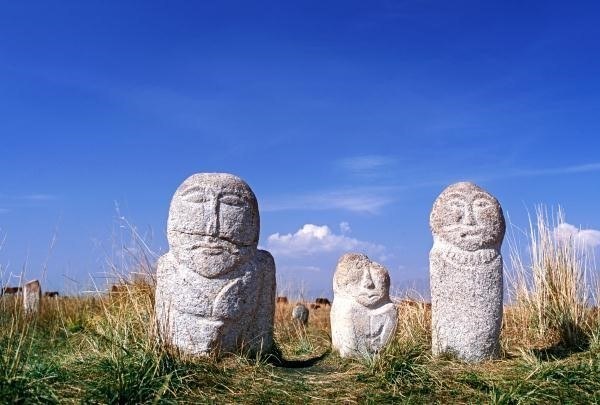 新疆伊犁昭苏县小洪纳海石人群,突厥风俗首领墓前立石人纪念