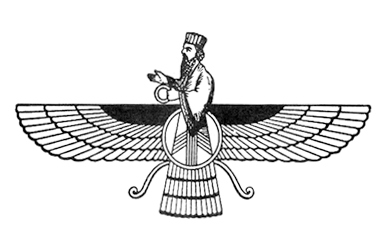 当时的拜火教原名琐罗亚斯德教,中国又称祆教,公元前6世纪创立与大夏,盛行于古波斯帝国,亚历山大东征受到打击,后在波斯萨珊王朝重新兴盛。图为祆教光明之神阿胡拉·玛兹达标志。