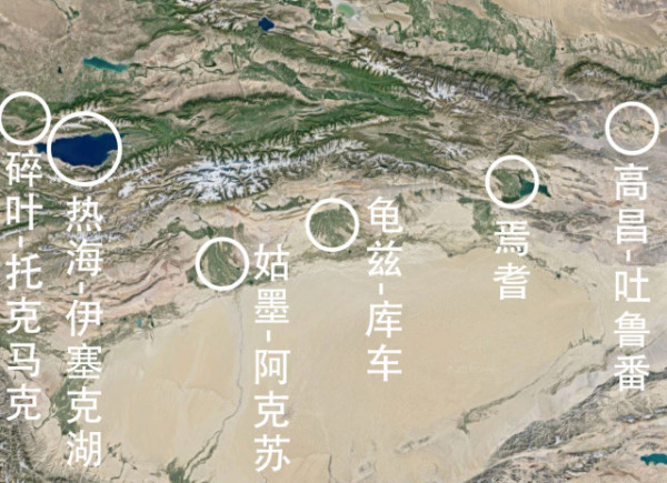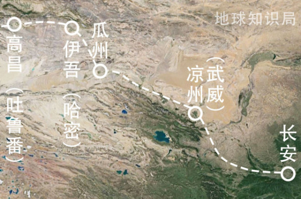 长安(西安)——凉州(武威)——瓜州——伊吾(哈密)——高昌(吐鲁番)