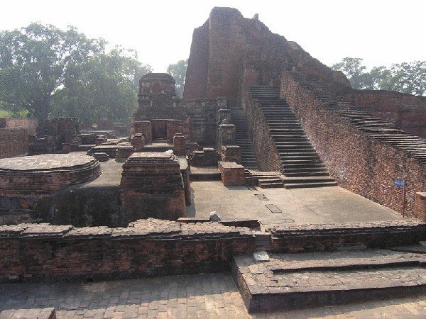 那烂陀寺最著名的大佛塔遗迹。这座佛塔共有七层,布满了精致的佛雕,每层由台阶相互承接,最终通向顶层的天台。