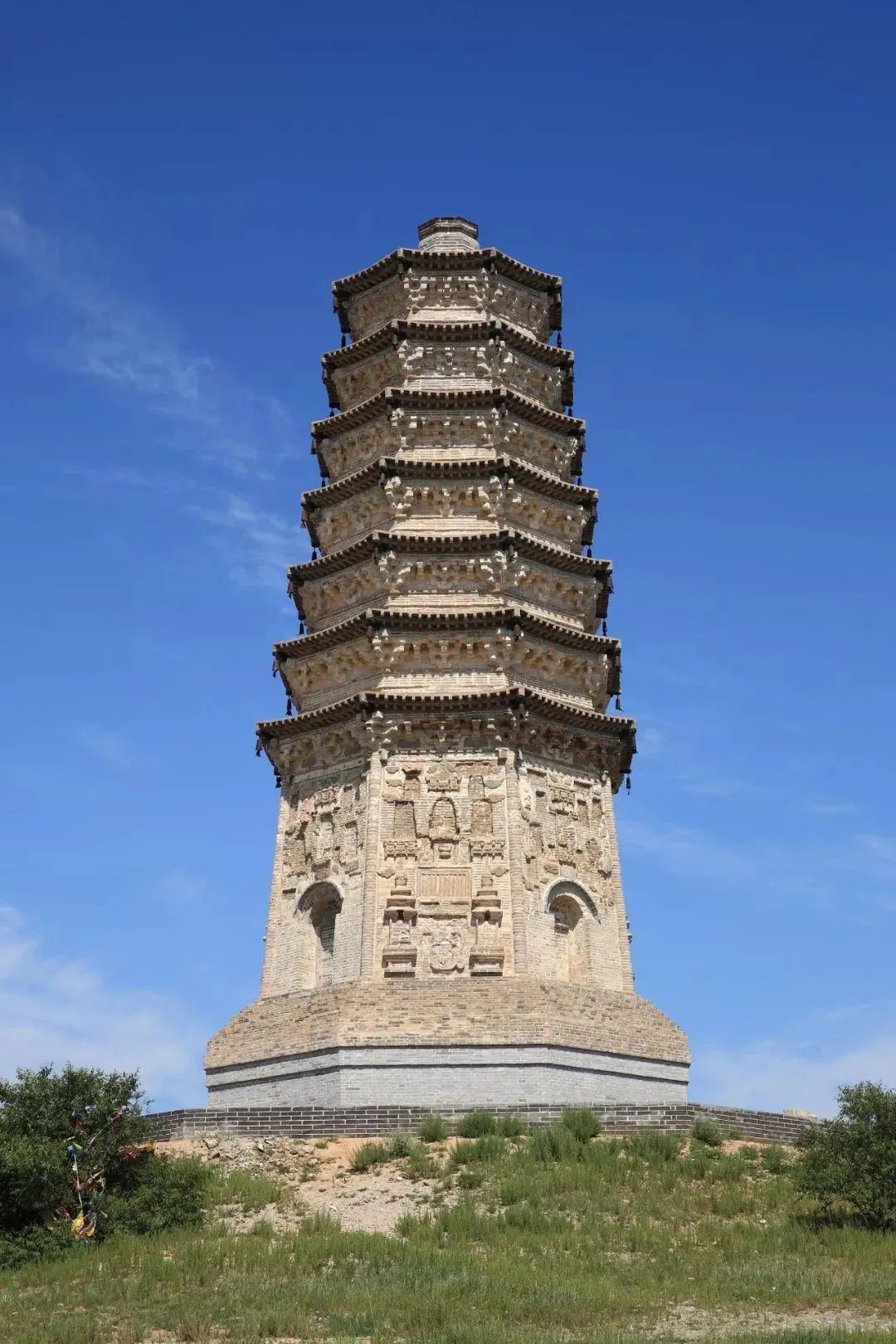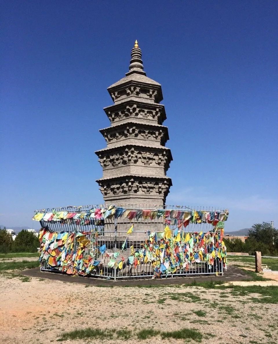 位于内蒙古赤峰市巴林左旗市区,高13.7米,六角五级密檐空心,转角无倚柱,修复后的塔身也看不出任何浮雕。