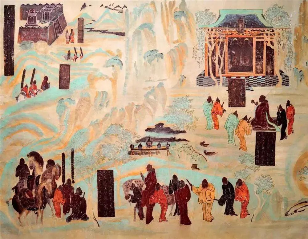 壁画艺术经过隋代的探索,到了唐代更加娴熟精湛,画家通过雄伟壮观的宫殿楼阁、绚丽多姿的山水景致来创造辽阔的境界,中国式的绘画技法已得到充分的表现。