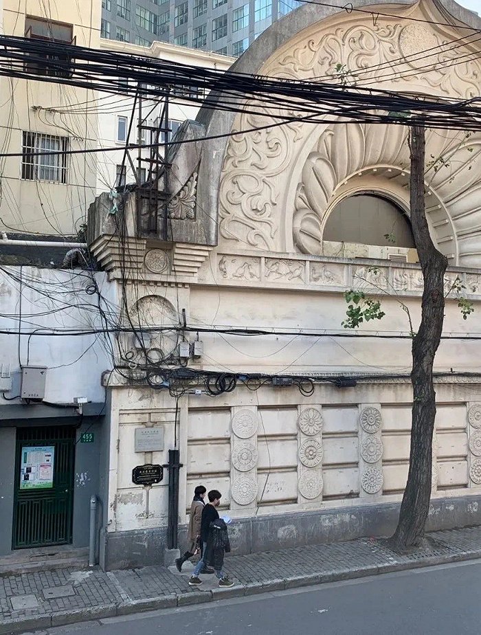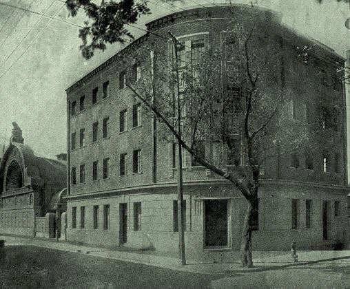负责建筑施工的是来自伪满铁大连的岛津工作室,当地配合施工的是陈信记营造厂。岛津工作室的岛津礼作和冈野重久都是伪满洲建筑协会(一九二〇年十一月成立)会员,岛津礼作也是大谷光瑞旧交,先后协助大谷光瑞修建旅顺别院、上海无忧园、关东别院等建筑,这些无疑都是工程安全快速推进的保障。本堂和会馆本体建筑都是采用钢筋混凝土建造,内铺设木地板。会馆内还设有小型会议室、起居室、卫生间,水电齐全,满足僧侣居住和会客使用,这些都是现代化生活方式。现在本堂用作娱乐演艺场所,会馆被改造成民用住宅,牢固的建筑仍在发挥效用。