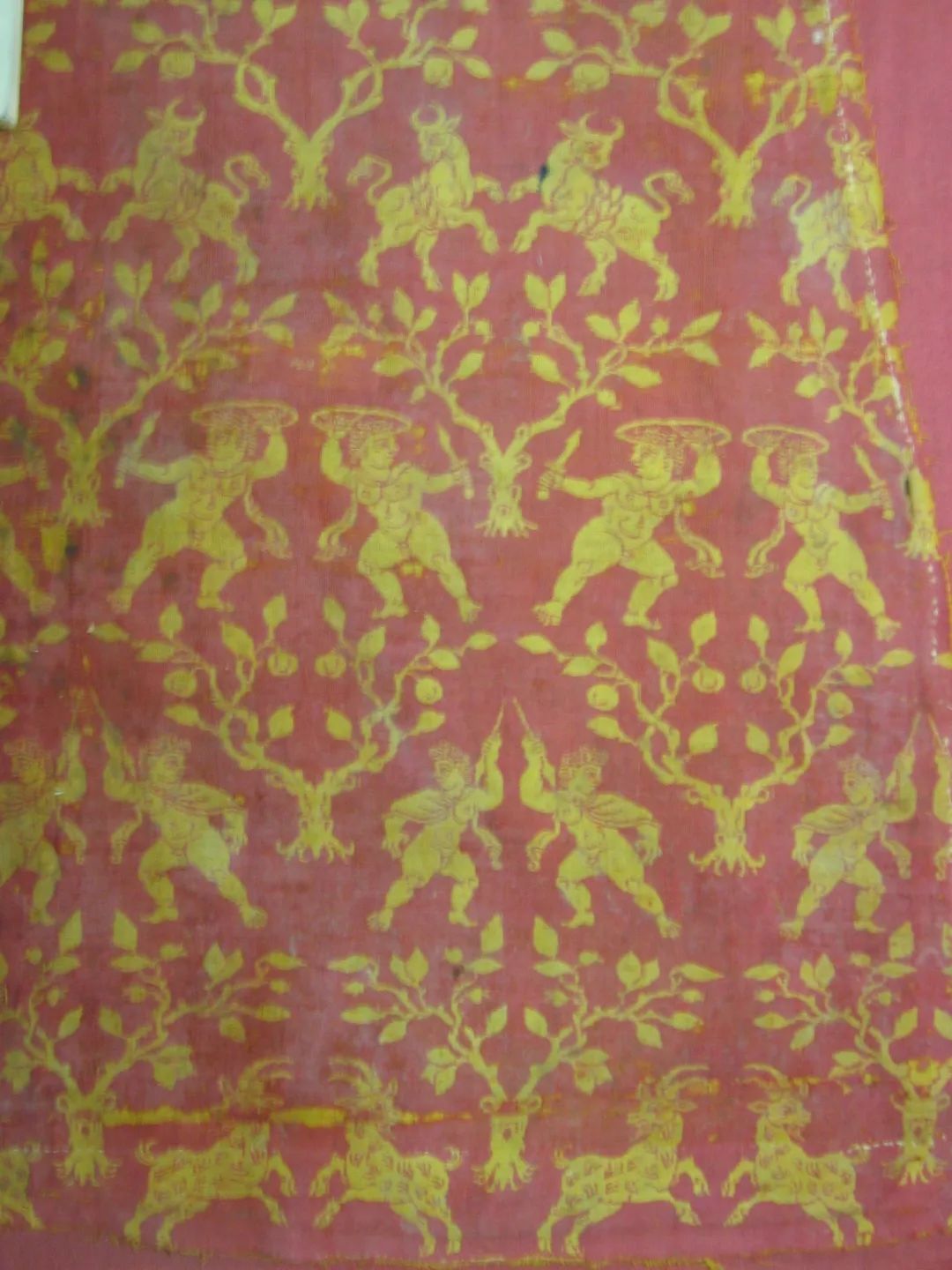 图1 修复前的人兽树纹罽袍