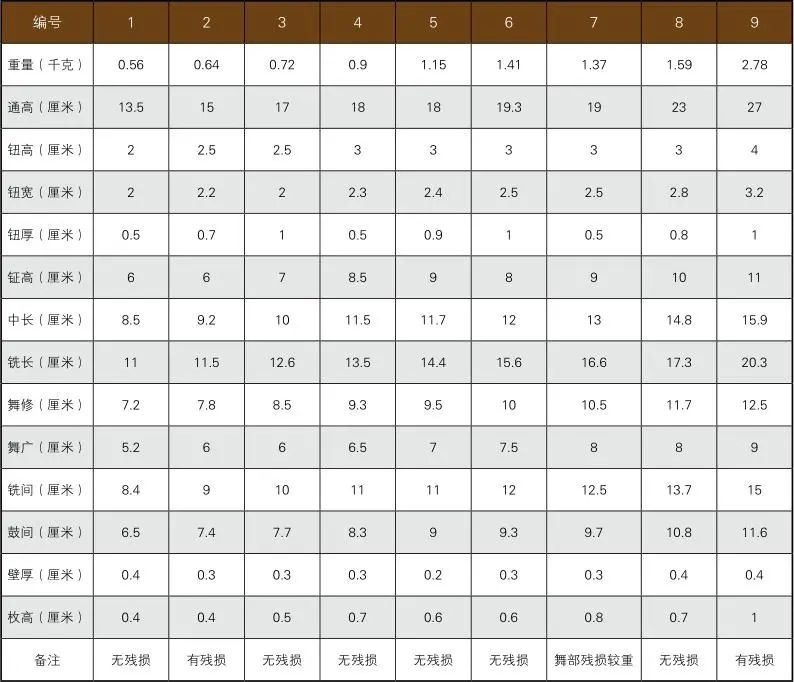 根据关晓武总结的钮钟形制演变情况,可以看出西周至战国时期,钮钟的制作有尺寸规范。春秋至战国时期,钮钟形制尺寸比值的波动性较大,同组钟之间的尺寸比值相差很大,不同组钟之间的尺寸比值相差更多。