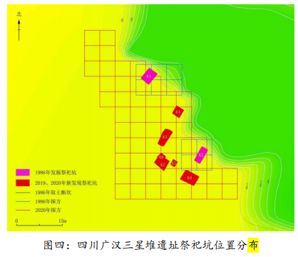 神奇的是,2019~2020 年,四川省文物考古研究院在 1986 年发掘的祭祀坑周围勘探新发现 6 座坑,加上先前的 2 座共有 8 座。这其中有 2 座坑的位置重叠,其分布形状恰似北斗七星的星像。这究竟是巧合、还是天意?最不可思议的还是童先生的神来之笔!