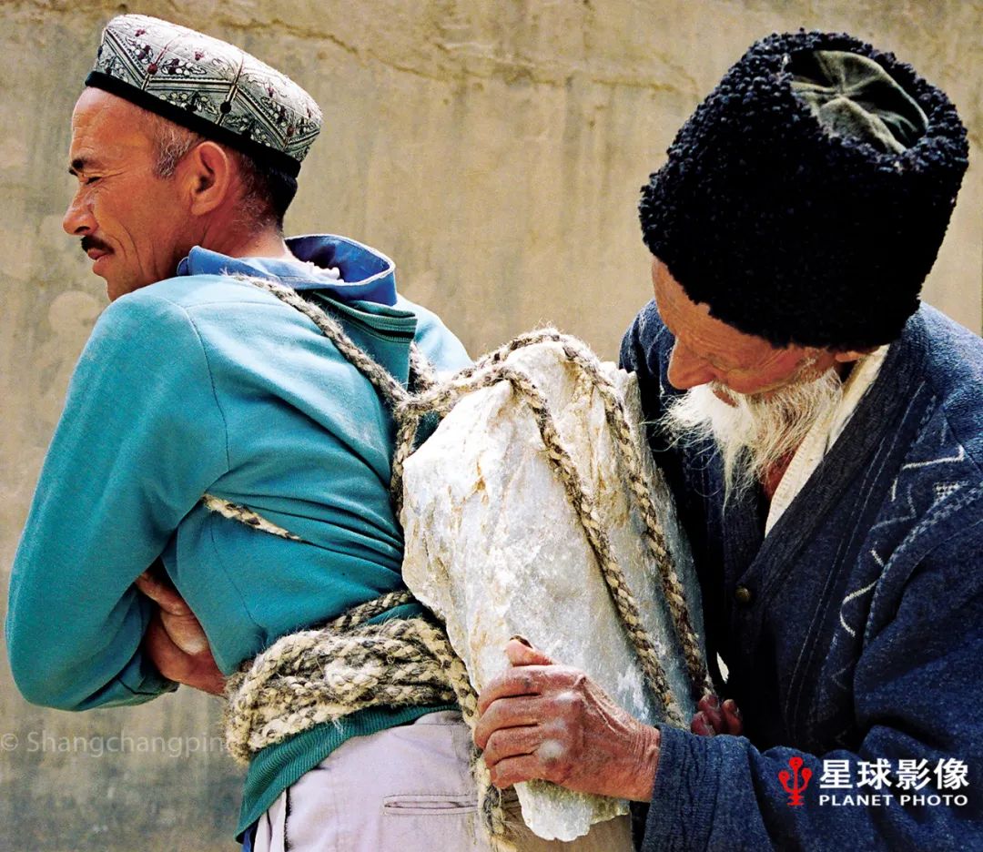▼ 多年前,阿拉玛斯矿产出的山玉依靠人工运输