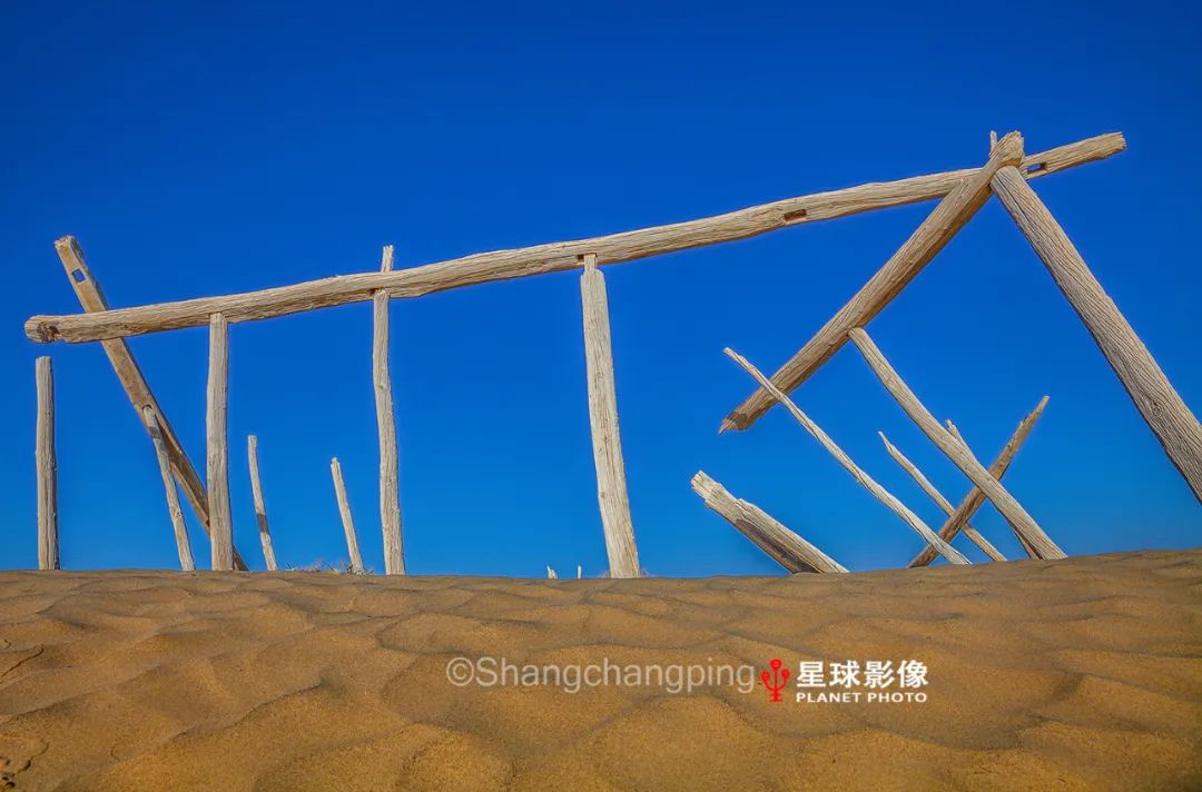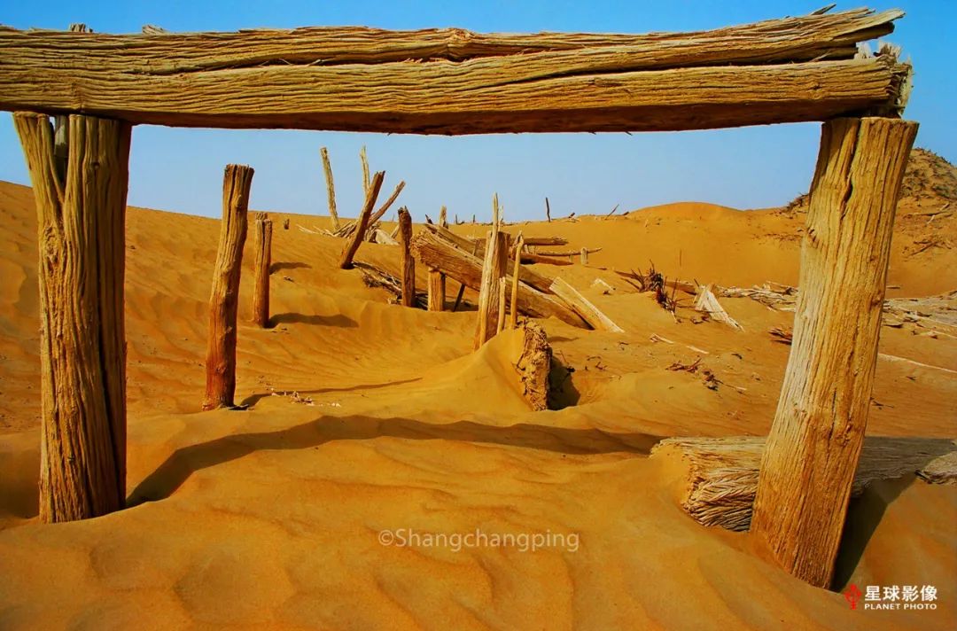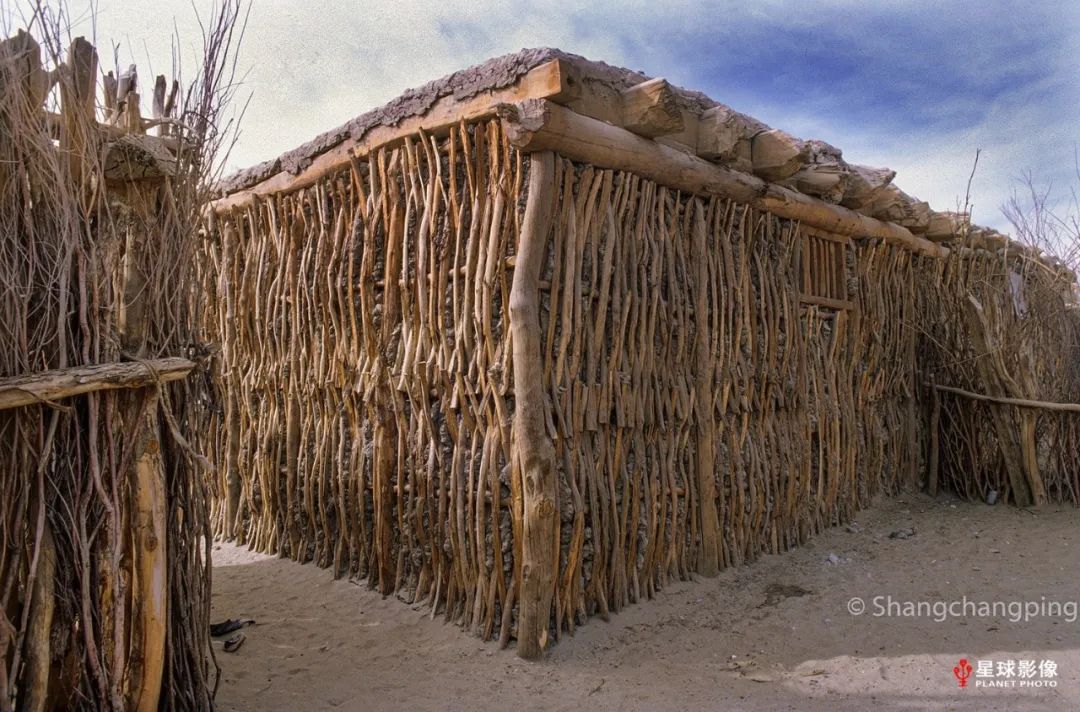 ▼ 塔克拉玛干沙漠腹地的达里雅布依乡村民用胡杨搭建的房子(2002)