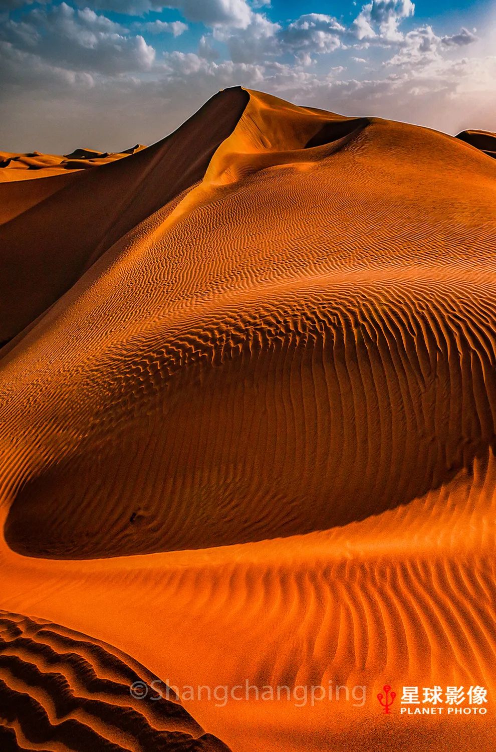 ▼ 塔克拉玛干沙漠高大的新月形沙丘