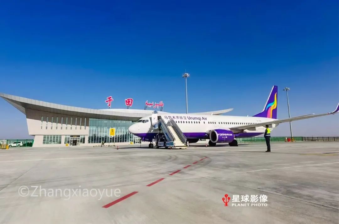 ▼ 2020年12月26日,于田机场正式通航。于田机场可满足年旅客吞吐量18万人次、货邮吞吐量400吨的使用需求。于田机场的开通,完善了和田地区综合交通体系,曾经的天堑变通途,促进了当地经济发展。@摄影师 张霄悦
