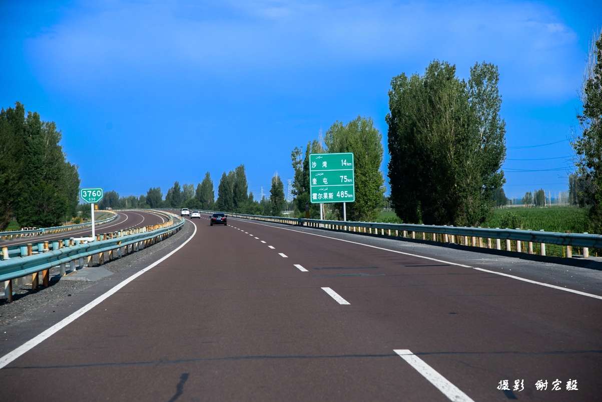 不到新疆不知中国之大,不进天山不知山色之美。路边的山峦起伏,不时可见载重的重型卡车和挖掘机在远处出没。