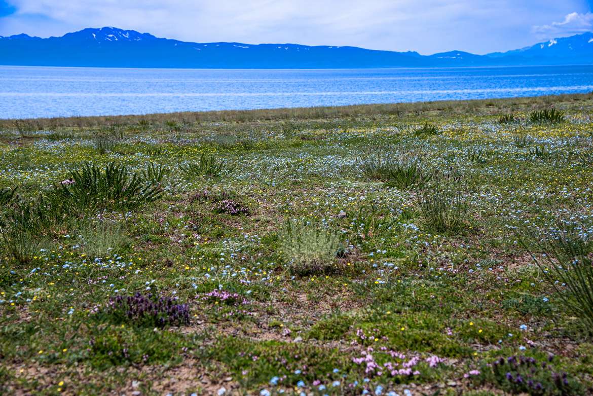 车近赛里木湖时,路边的草原上星星点点的红花往远处漫延。据说若早个十来天,那则是遍地红花让你目不暇接,这话我信,眼前的美景足以验证了。