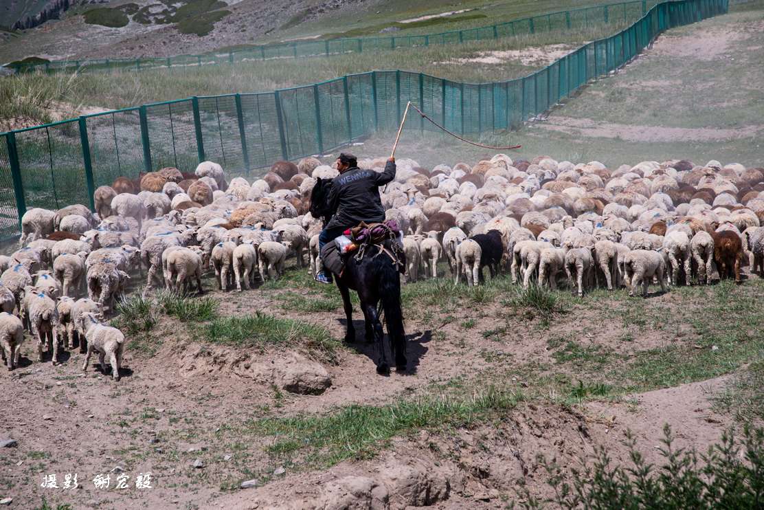 要拍果子沟大桥要徒步攀爬一座山包,没成想当地的牧民在山下筑了围挡当我们推开门要进入小路时,一位牧民从边上闪身出来,阻挡了去路。好说歹说,每人付了5元买路钱才得以上山。