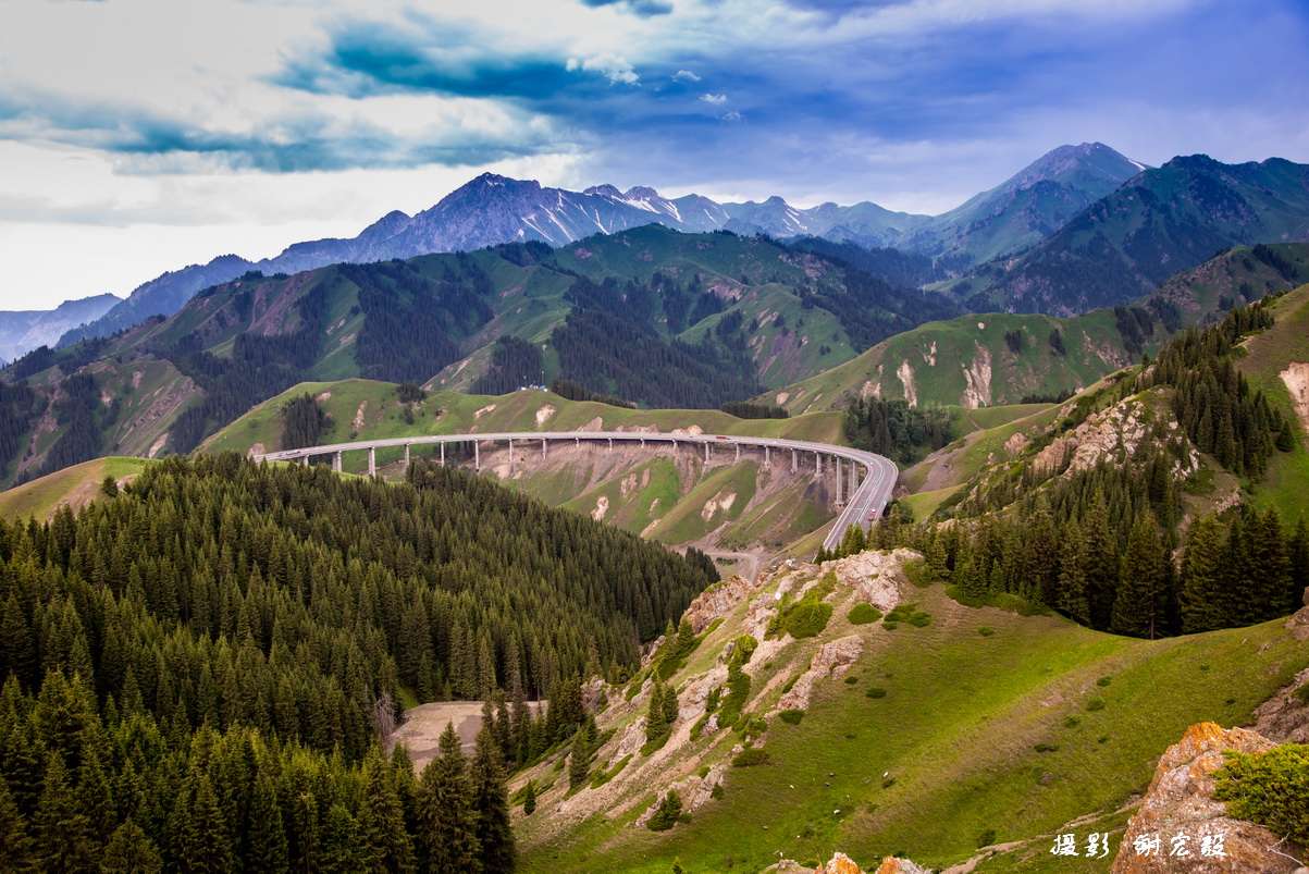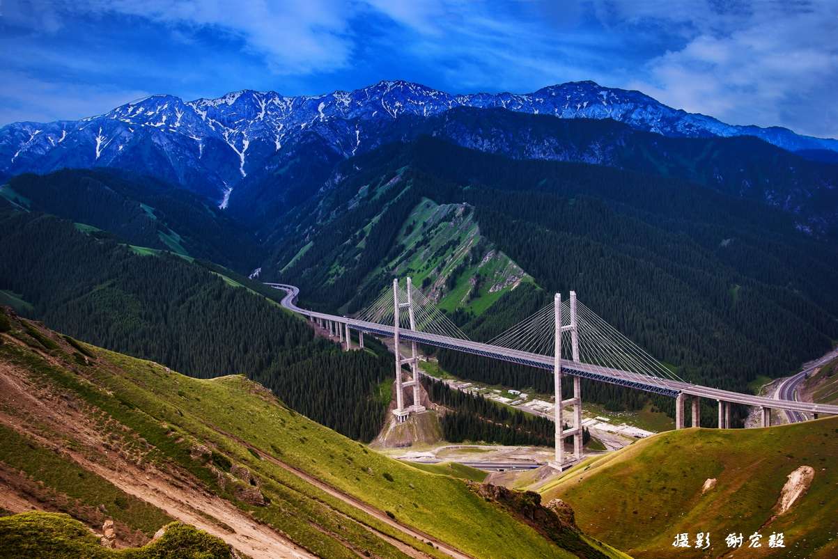 这就是果子沟大桥,是新疆高等级公路的第一高桥,跨越果子沟和将军沟连接。前面几张拍的就是大桥跟将军沟衔接的引桥。