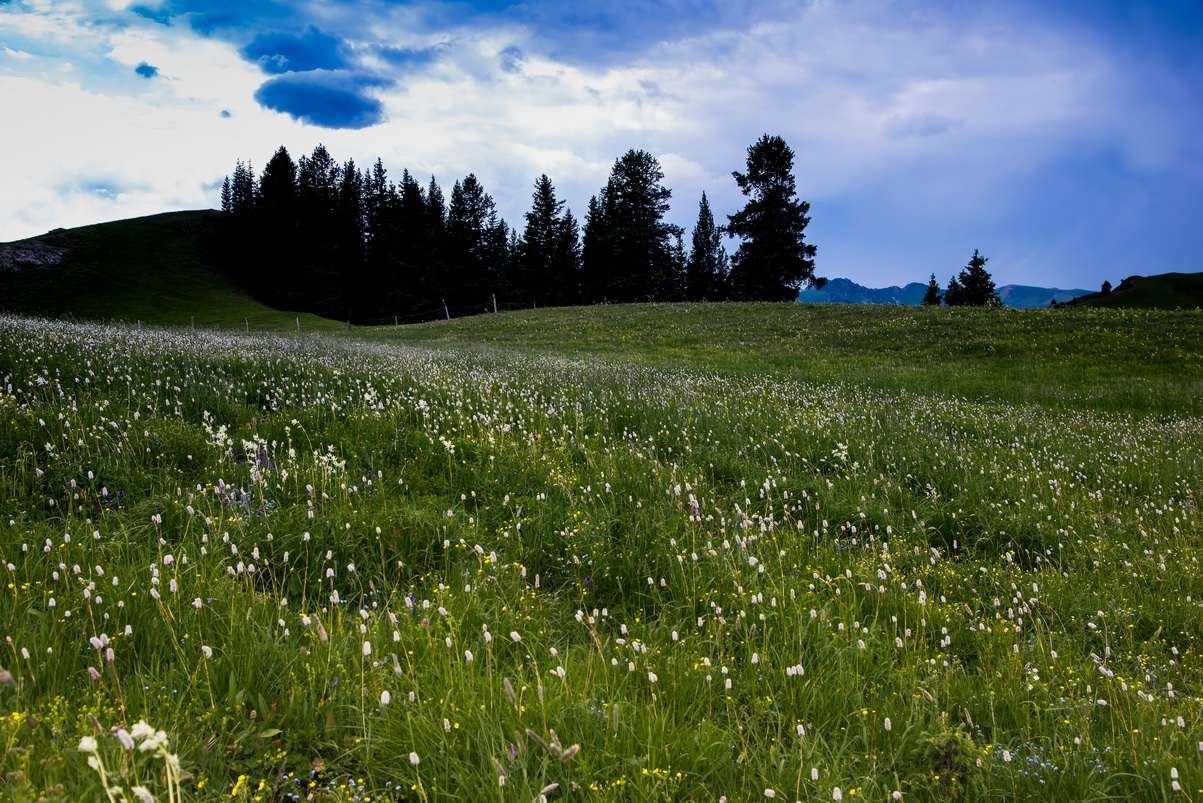 阳光光顾的草地一片灿烂,云彩挡住的下方则呈现暗绿色,光影为游客们勾勒出一幅幅绝美的画面。