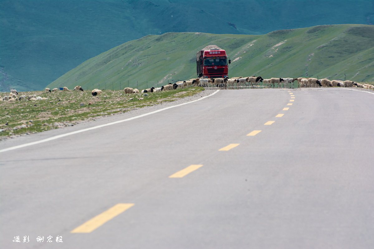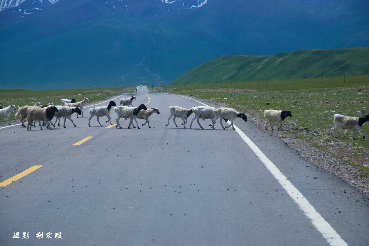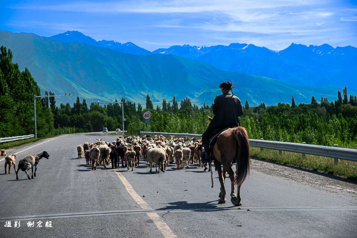 羊群在公路上不慌不忙地结队前行,牧羊人骑在马上悠然自得。这在牧区是寻常事,车辆遇此只能礼让,千万着急不得。
