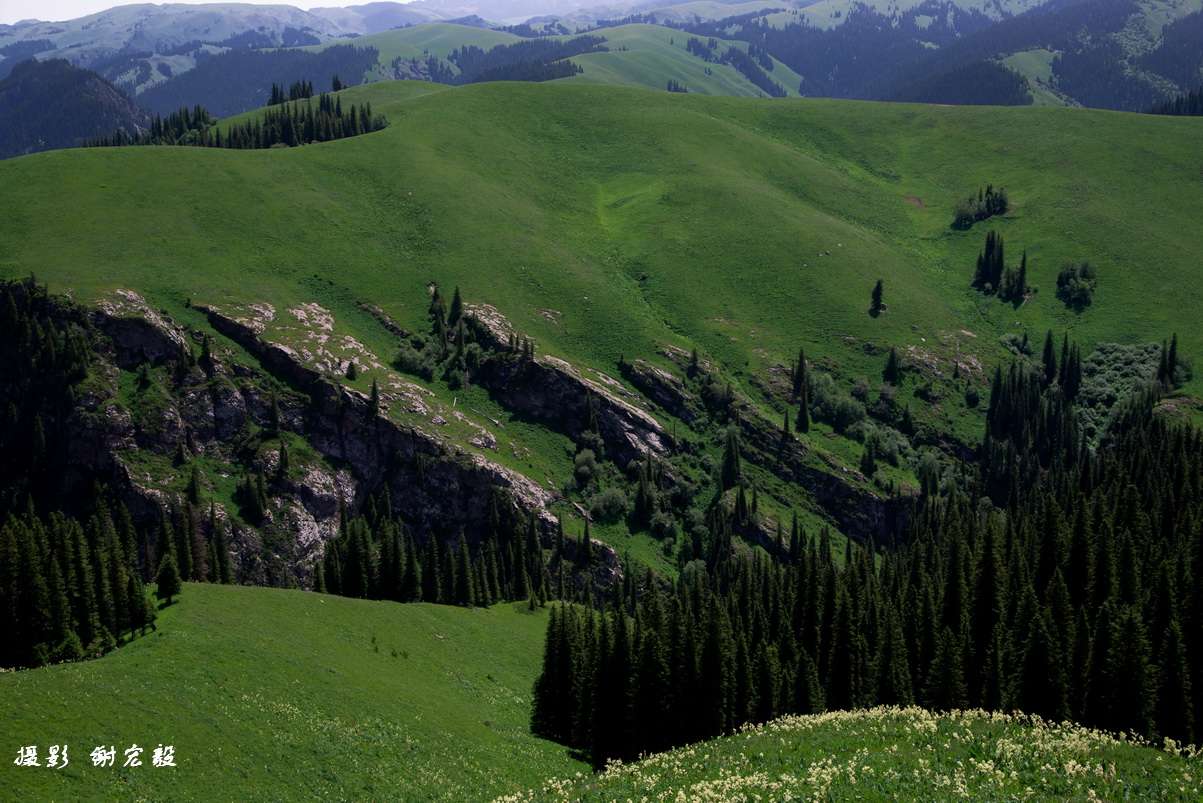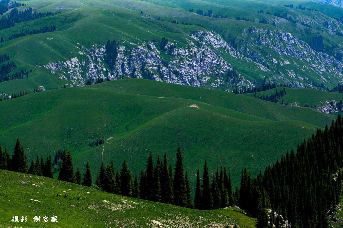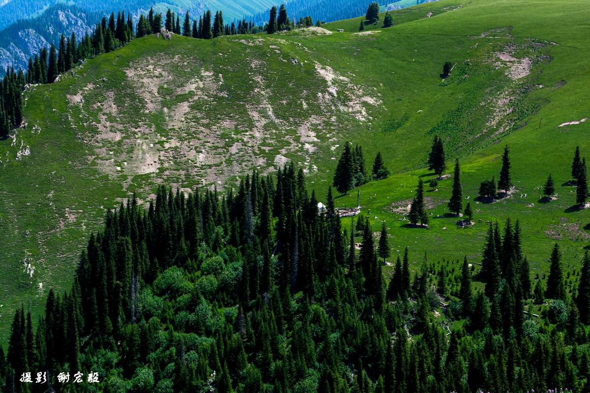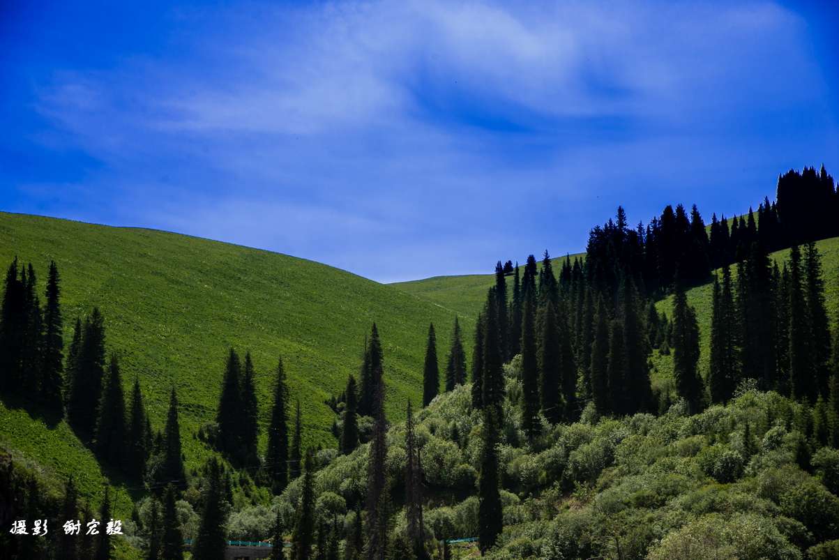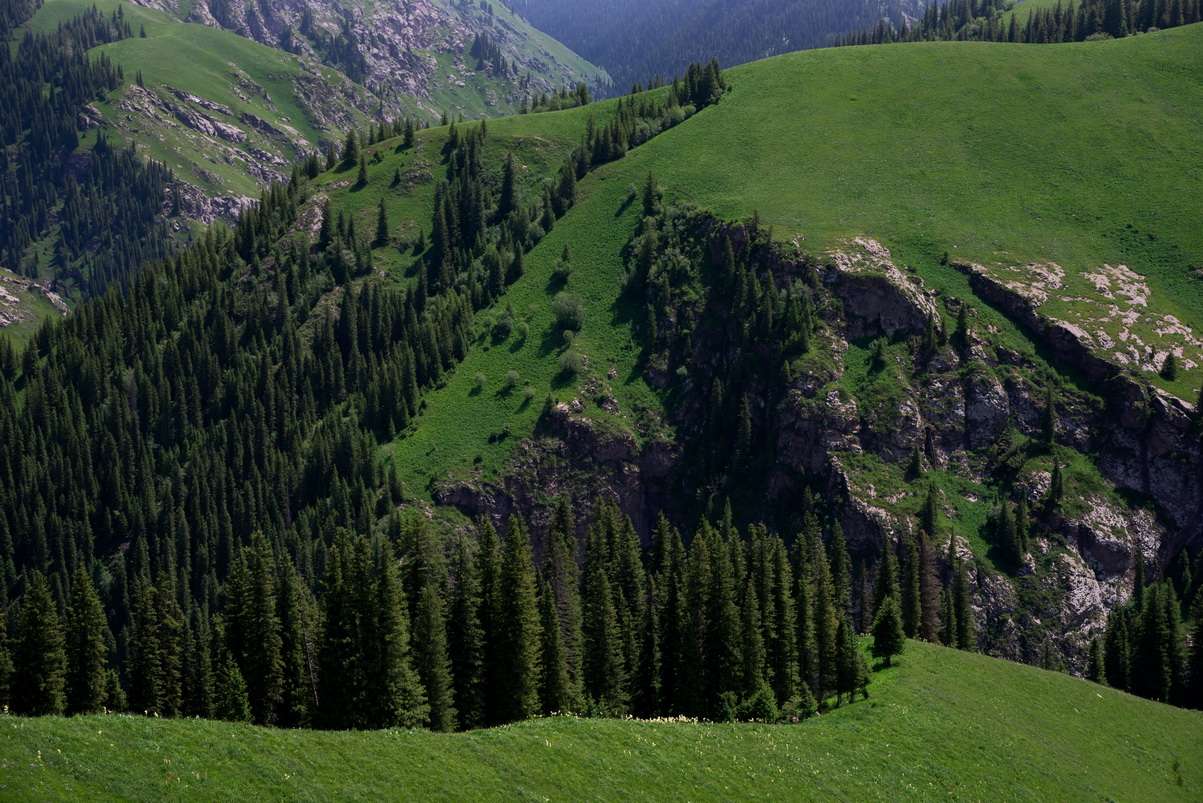 车子离开伊犁河谷拐进盘山公路,周围景色又改变了。公路边的河谷里云杉林立,清澈的雪山融水沿着小河欢快地流淌,往前汇入伊犁河。