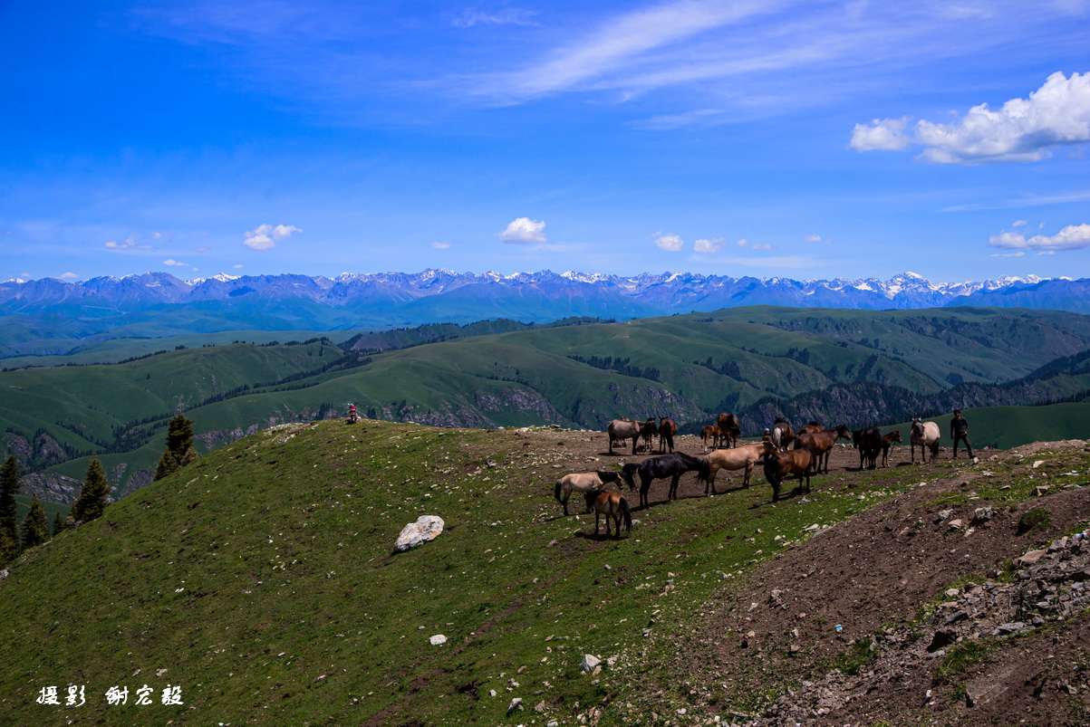 远处的那拉提草原对我们的诱惑不大,“曾经沧海难为水,除却巫山不是云”。亲身体验过琼库斯台,喀拉峻草原绝美景色后,大家的“品味”无形中都高了许多,更何况前面还有巴音布鲁克在等候我们。