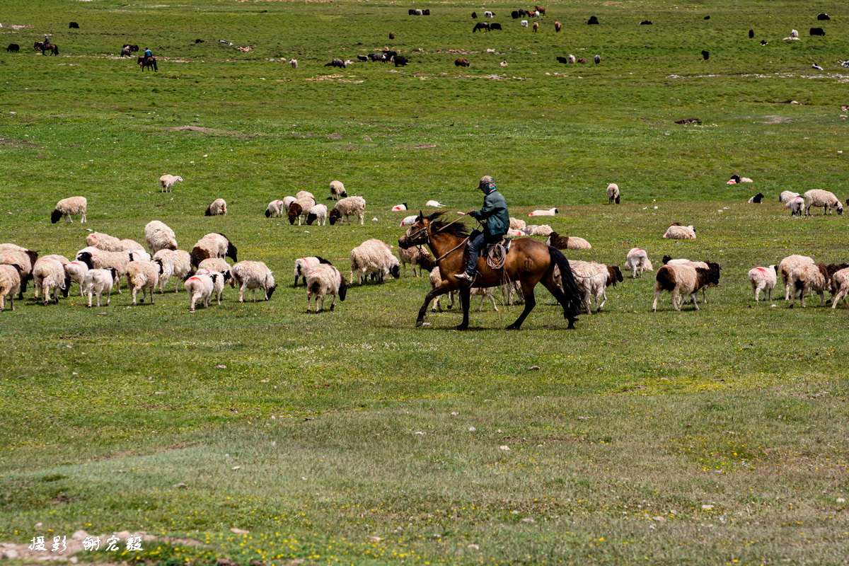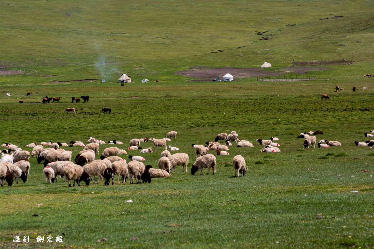 离巴音布鲁克不远,又被羊群拦阻在路上,反正目标在望,不着急了。