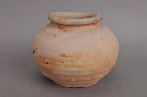 圆唇,圆鼓腹,平底,腹部饰多圈凸棱,外壁施青釉,内部不饰釉,制作粗糙;口径9.4厘米,底径8.7厘米,高12.3厘米,奇石采(图一,1)。卷沿,短颈,斜腹,腹部饰多圈凸棱,平底,外壁施青黄釉不及底,口沿内壁施青黄釉, 口8.5厘米,底9厘米,高14.5厘米,文头岭采(图一,2)。圆唇,口部变形,四系耳,鼓腹,腹部内收,平底,外壁施青黄釉不及底,内壁及底部施青黄釉,口径9厘米,底径9.5厘米,高17厘米,奇石采(图一,3)。圆唇,四系耳,鼓腹,平底,肩部施有水波纹,外壁施青黄釉,且脱釉严重,口径11.9厘米,底径12.5厘米,高16.5厘米,文头岭采(图一,4)。